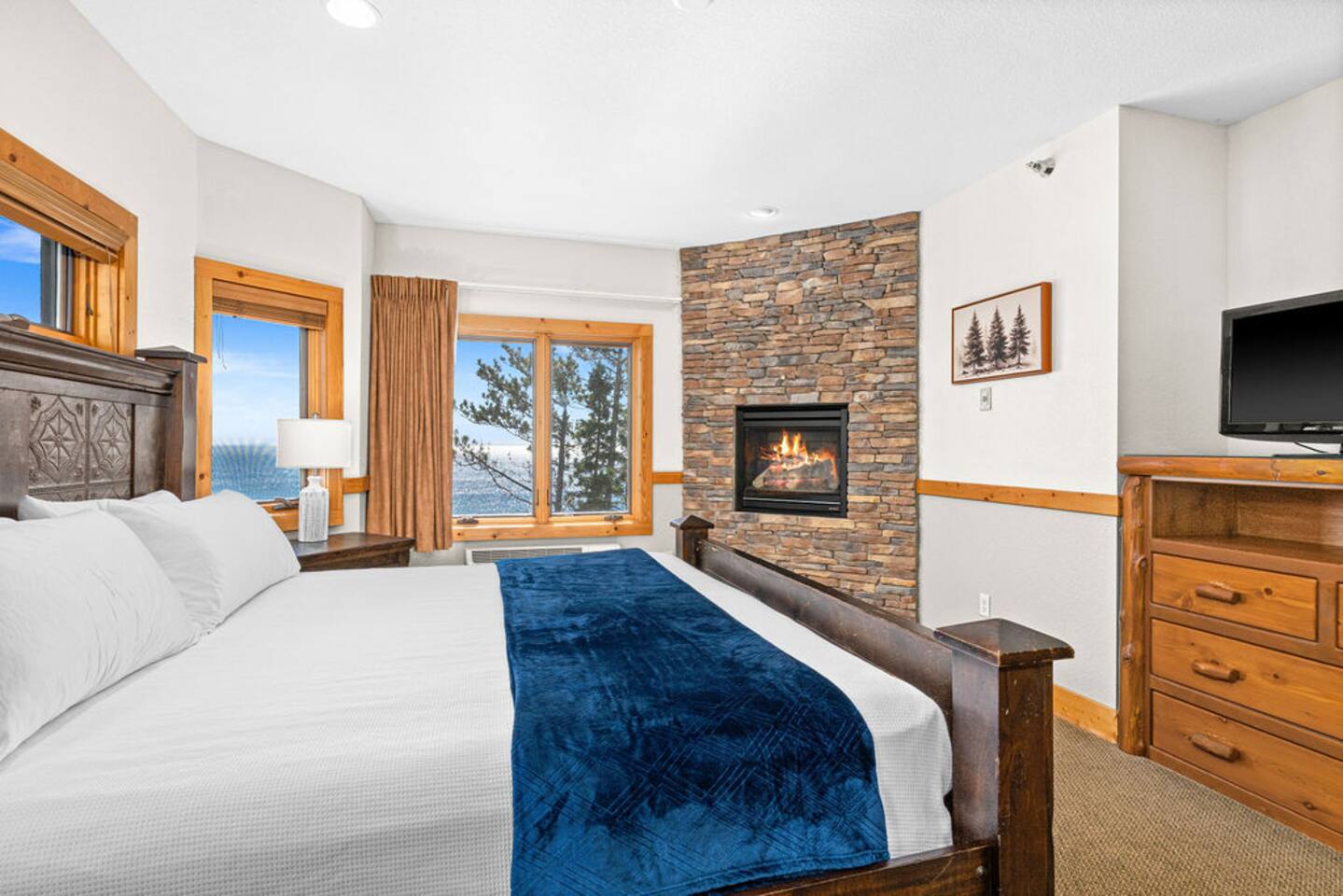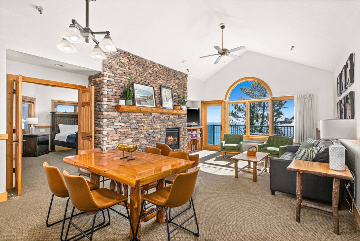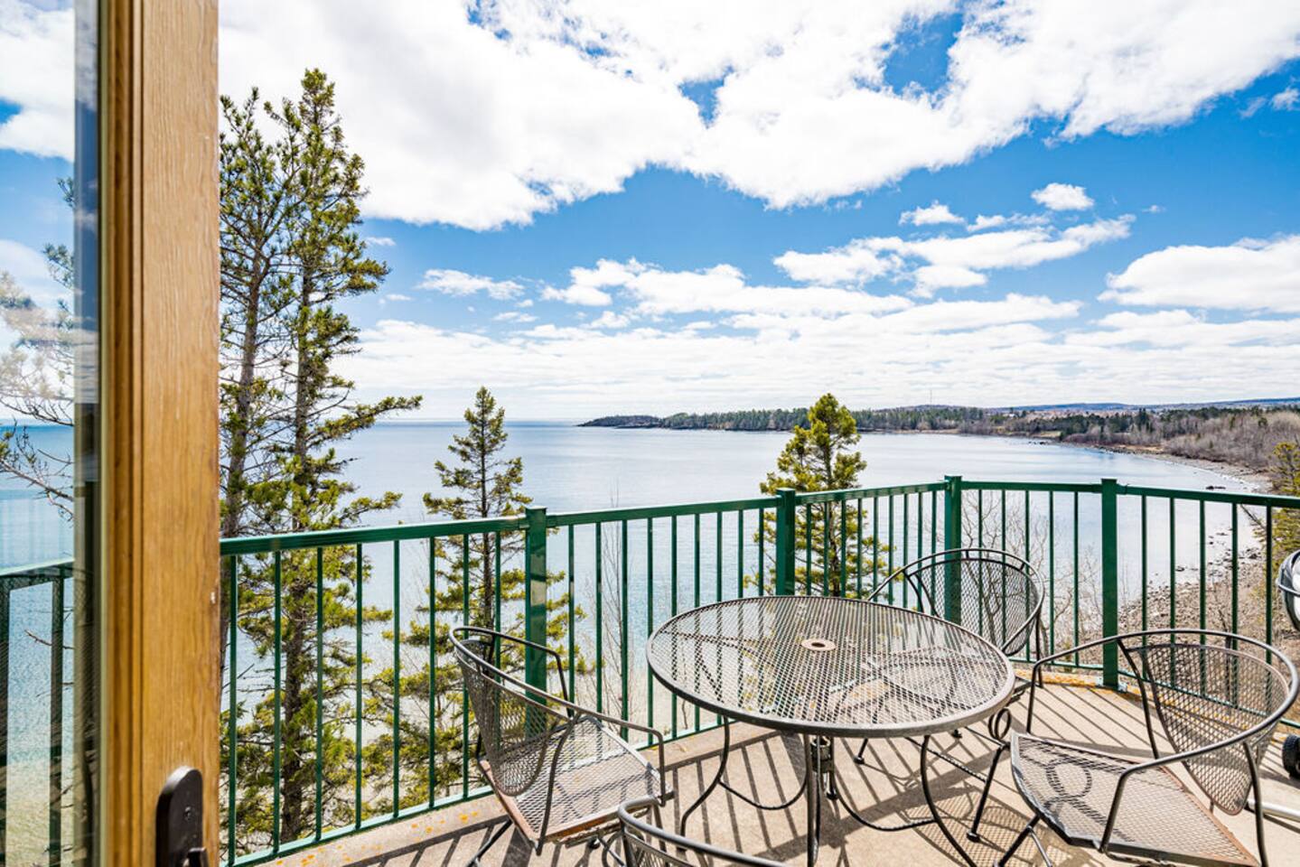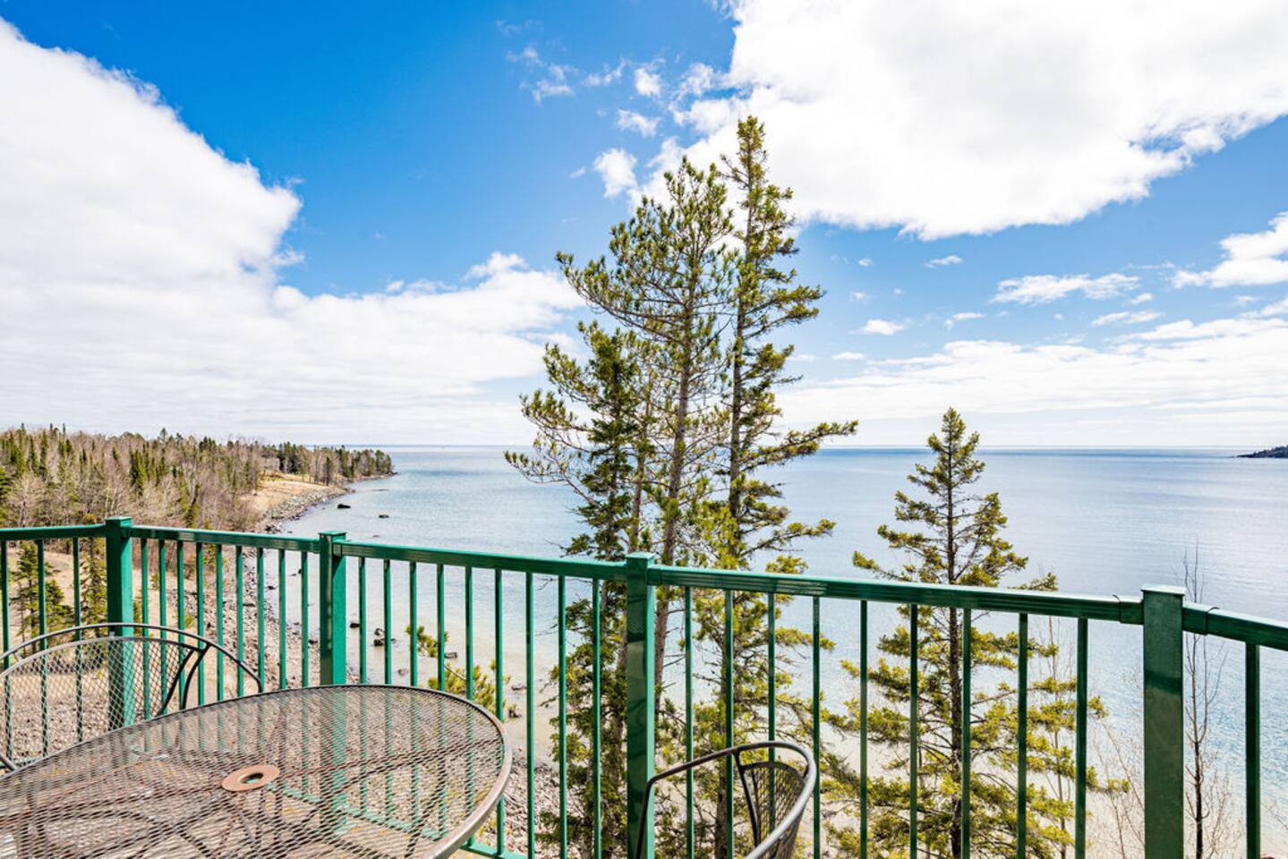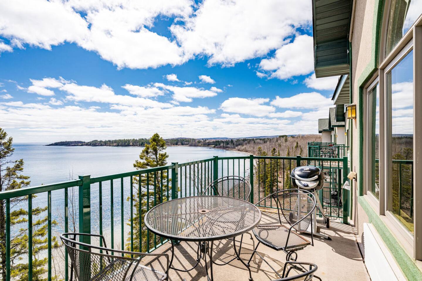 Entryway: hallway door opens to an entryway with doors leading to your separate lock-off unit. Primary suite bedroom: spacious retreat with lake views, a king-sized bed, ensuite bathroom, fireplace, and whirlpool spa. Connects to fully equipped kitchen, dining area, and living room with a fireplace and private balcony. Additional sleeping: top-of-the-line Room&Board king-size American Leather sleeper sofa with bedding provided for maximum comfort during your stay. Living room: professionally decorated with ample seating, fireplace, TV, puzzles/books/games, balcony with unparalleled lake views, outdoor dining, and an electric grill. Kitchen: fully equipped kitchen with oven, stove, refrigerator, dishwasher, microwave, dishware, flatware, toaster, wine glasses, Nespresso machine as well as drip coffee maker. Amenities: community indoor pool, indoor/outdoor hot tub with lake views, sauna, fitness center, coin laundry, ice machine, beach bonfire, playground, and beach access. Community parking lot with 220v EV charger available w/fee. Our guests are welcome to use the nearby Superior Shores resort's bicycle rentals, kayak rentals, and outdoor pool for a fee. Contact the resort for more information. The condo is one level with accessible parking and zero step entry. Enjoy free community high-speed Wi-Fi, towels/linens, iron, hair dryer, complimentary toiletries, dish soap, dishwasher detergent, trash bags, and paper towels. The corner penthouse is one of the most desirable units in the Burlington Bay complex because of its higher ceilings, larger windows, and no sounds of footfalls overhead allowing for maximal relaxation during your stay. The seaport town of Two Harbors is the gateway to Minnesota’s North Shore. With breathtaking views of North America’s largest great lake, this ideal destination offers endless activities for outdoor enthusiasts with access to hiking, biking, and kayaking in the summer and skiing, skating, and snowmobiling in the winter. The penthouse sits directly on the beginning of the Gitchi-Gami State Trail. When complete, this 86-mile paved trail will run along the North Shore of Lake Superior, connecting Two Harbors to Grand Marais and offering access to multiple historic sites and five majestic state parks.