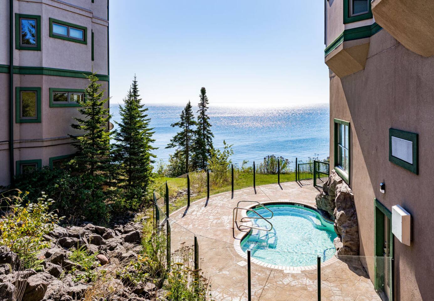 Retreat to the tranquility of Minnesota's breathtaking North Shore. Located in the charming town of Two Harbors, this one bedroom lakefront suite is situated in a private bay. The condo features expansive windows showcasing stunning views of Lake Superior. Amenities include an indoor pool, indoor/outdoor hot tub, fitness area, sauna, and beachfront bonfire. Come unwind in the serenity of nature!